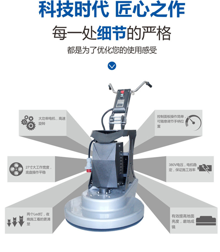 拋光機(jī)是為了讓地面表面有光澤,需要先研磨后才可以拋光。拋光分為粗拋和精拋,這時候可以使用拋光機(jī),配合拋光墊,提高地面的光澤度。高速地坪拋光機(jī)讓你輕松完成地坪拋光工作,提高地坪亮度。