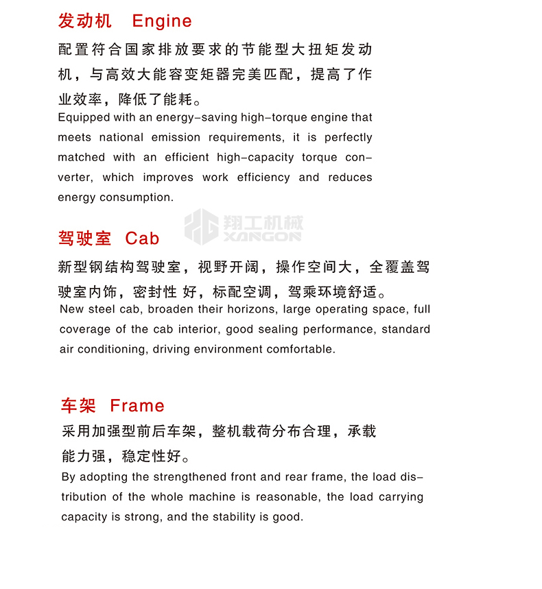 主要用于鏟裝土壤、砂石、石灰、煤炭等散狀物料,也可對礦石、硬土等作輕度鏟挖作業(yè)。換裝不同的輔助工作裝置還可進(jìn)行推土、起重和其他物料如木材的裝卸作業(yè)。在道路、特別是在高等級公路施工中,裝載機(jī)用于路基工程的填挖、瀝青混合料和水泥混凝土料場的集料與裝料等作業(yè)。